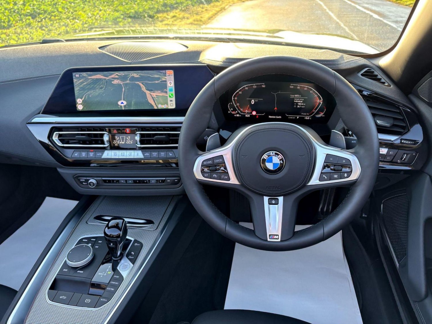BMW Z4 20i M-SPORT AUTO SDRIVE 197PS... 1,900 MILES... M-Sport Pro Package, Black Sapphire, Black Leather with Contrasting Grey Stitch, Sports Electric Memory Heated Seats, Multimedia Widescreen with Factory Fitted Professional Satellite Navigation Plus Wireless Android and Apple Carplay, Front and Rear Parking Sensor, Auto LED Lights with High Beam Assist, LED Daytime Running Lights, LED Rear Lights, Handsfree Bluetooth, DAB Radio/SD/USB/Aux Keyless Entry / Exit, Cruise Control with Speed Limiter and Brake Function, Unmarked 19" Bi-Colour Alloys, Electronic Climate Control, Ambient Lighting, Adjustable Multifunction Heated Leather Steering Wheel, Multi Airbags, ABS and ESP, Remote Central Locking with Built in Alarm / Immobiliser and 2x Keys, ISOFIX Anchor Points, Power Assisted Steering, Height Adjustable Seats, Driver Information System, Push Button Stop / Start, Electric Windows, Electric Mirrors with Auto Fold and Auto Dim, Tinted Glass, Leather Arm Rest, Auto Hold Electronic Handbrake, Wind Deflector, Tyre Warning System, Driving Assistant Package, Comfort Package, Adaptive Driving Modes….AS-NEW CONDITION with BMW Service, 1 Private Owner, BMW Warranty Until 29.03.2026 and 5 YEAR SERVICE PACK INCLUDED... HPI Clear, Part Exchange Welcome, Debit Cards Accepted and Finance Available.